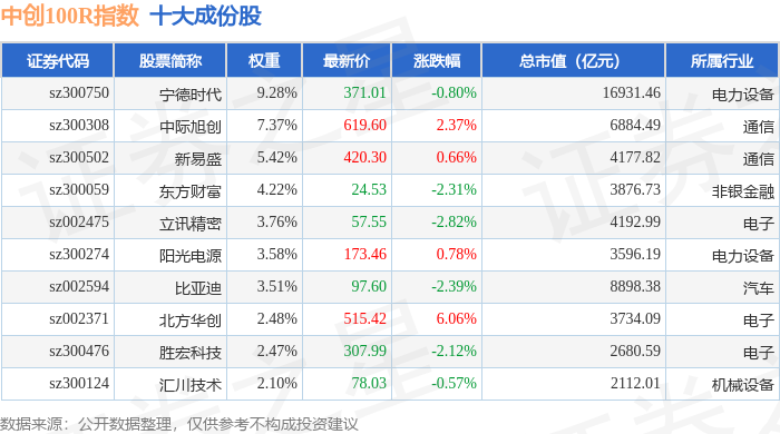 中创100R(399611)指数十大成份股详情如下: