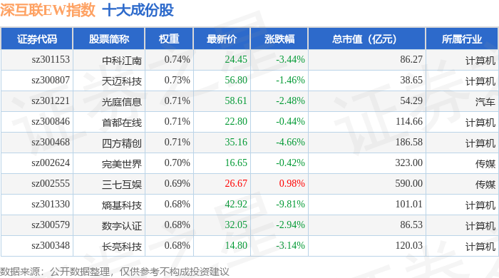 资金流向方面,深互联EW(399677)指数成份股当日主力资金净流出合计62.72亿元,游资资金净流入合计3.68亿元,散户资金净流入合计59.04亿元。成份股资金流向详情见下表:
