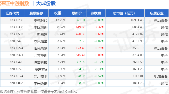 深证中游(399705)指数十大成份股详情如下:
