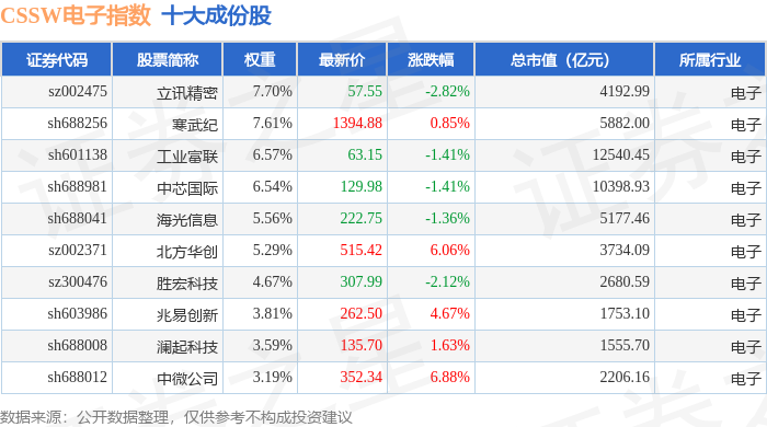 资金流向方面,CSSW电子(399811)指数成份股当日主力资金净流出合计56.19亿元,游资资金净流入合计3.33亿元,散户资金净流入合计52.86亿元。成份股资金流向详情见下表: