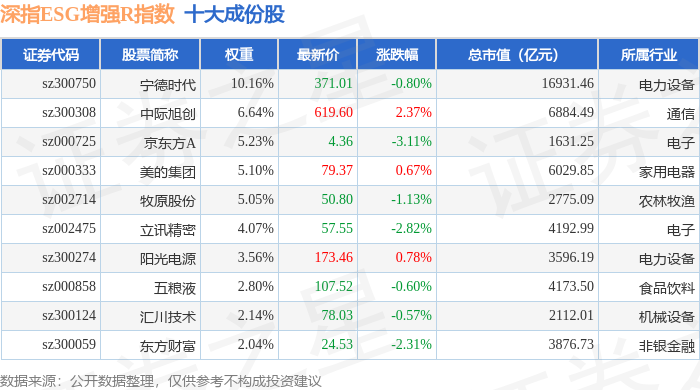 深指ESG增强R(470032)指数十大成份股详情如下: