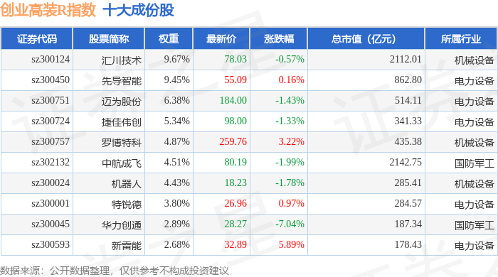 证券之星消息,1月7日,创业高装R(470040)指数报收于4766.79点,跌0.22%,成交471.55亿元,换手率6.48%。当日该指数成份股中,上涨的有23家,广联航空以9.79%的涨幅领涨,下跌的有27家,诚益通以11.28%的跌幅领跌。