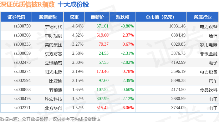 深证优质信披R(470065)指数十大成份股详情如下: