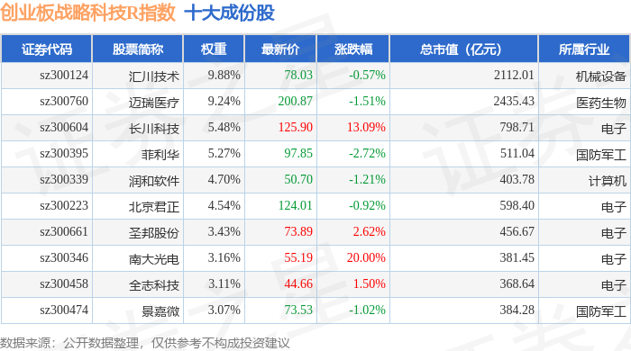 创业板战略科技R(471004)指数十大成份股详情如下: