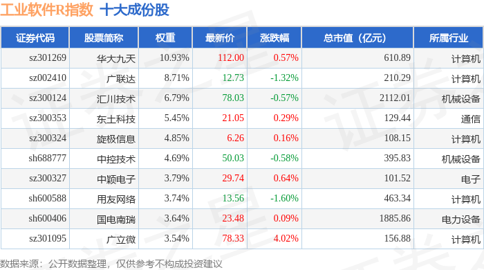工业软件R(480034)指数十大成份股详情如下: