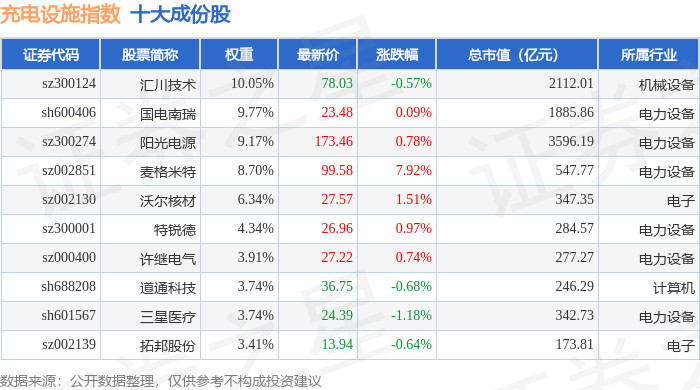 资金流向方面,充电设施(980077)指数成份股当日主力资金净流入合计3.0亿元,游资资金净流出合计2.29亿元,散户资金净流出合计8724.72万元。成份股资金流向详情见下表: