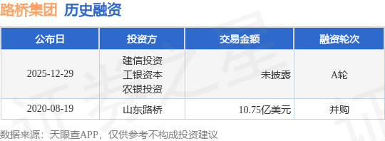 证券之星消息,根据天眼查APP于12月29日公布的信息整理,山东省路桥集团有限公司A轮融资,融资额未披露,参与投资的机构包括建信投资,工银资本,农银投资。