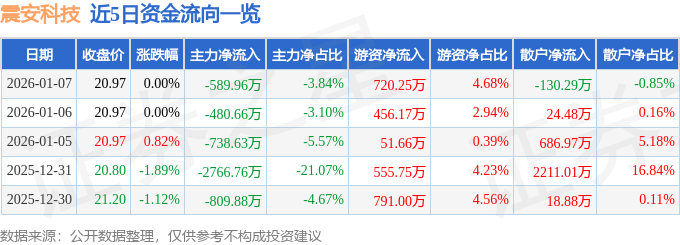 1月7日的资金流向数据方面,主力资金净流出589.96万元,占总成交额3.84%,游资资金净流入720.25万元,占总成交额4.68%,散户资金净流出130.29万元,占总成交额0.85%。