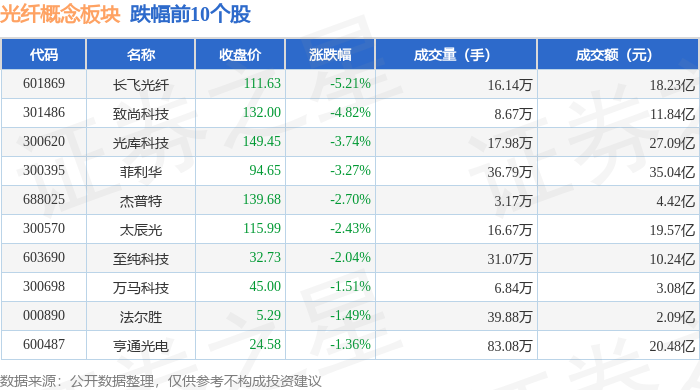 从资金流向上来看,当日光纤概念板块主力资金净流出9.25亿元,游资资金净流入2.59亿元,散户资金净流入6.66亿元。光纤概念板块个股资金流向见下表: