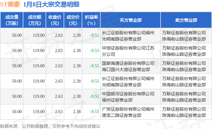 证券之星消息,1月8日ST德豪发生大宗交易,交易数据如下: