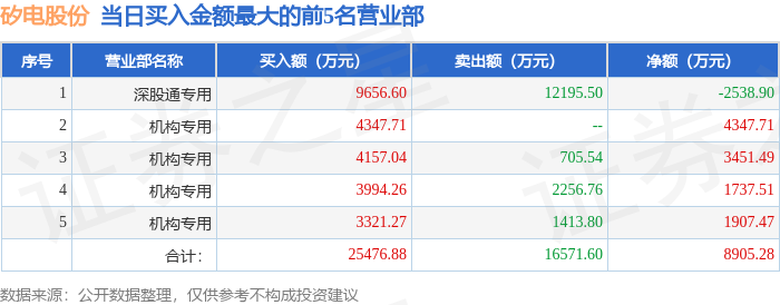 从龙虎榜公布的当日买卖数据来看,机构合计净买入1.24亿元,北向资金合计净卖出2538.9万元。