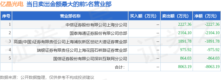 证券之星消息,沪深交易所2026年1月8日公布的交易公开信息显示,亿晶光电(600537)因有价格涨跌幅限制的日收盘价格跌幅偏离值达到7%的前五只证券登上龙虎榜。此次是近5个交易日内第1次上榜。