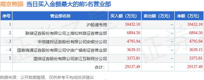 从龙虎榜公布的当日买卖数据来看,北向资金合计净买入6928.3万元。上海松林路、章盟主等知名游资榜上有名。(知名游资上海松林路一般指联储证券股份有限公司上海松林路证券营业部席位、知名游资章盟主一般指国泰海通证券股份有限公司宁波广福街证券营业部席位,根据市场资料整理,仅供参考)