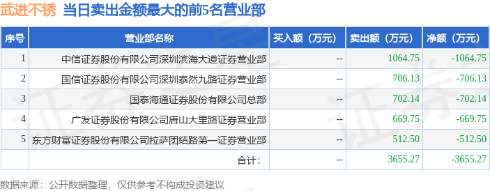 证券之星消息,沪深交易所2026年1月8日公布的交易公开信息显示,武进不锈(603878)因有价格涨跌幅限制的日收盘价格涨幅偏离值达到7%的前五只证券登上龙虎榜。此次是近5个交易日内第2次上榜。