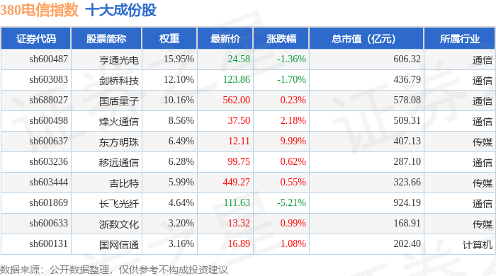 资金流向方面,380电信(000112)指数成份股当日主力资金净流出合计6.32亿元,游资资金净流入合计7805.93万元,散户资金净流入合计5.54亿元。成份股资金流向详情见下表: