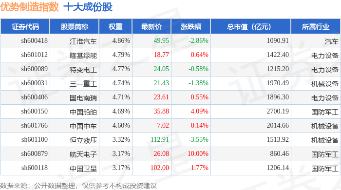 优势制造(000146)指数十大成份股详情如下: