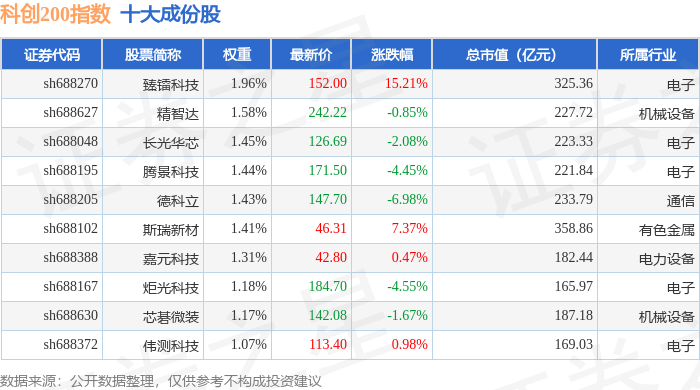 科创200(000699)指数十大成份股详情如下:
