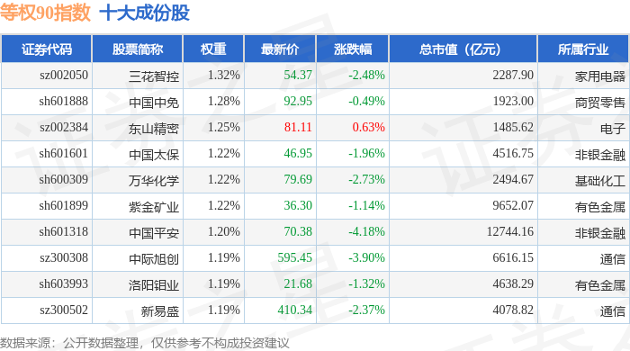 资金流向方面,等权90(000971)指数成份股当日主力资金净流出合计221.75亿元,游资资金净流入合计96.88亿元,散户资金净流入合计124.86亿元。成份股资金流向详情见下表: