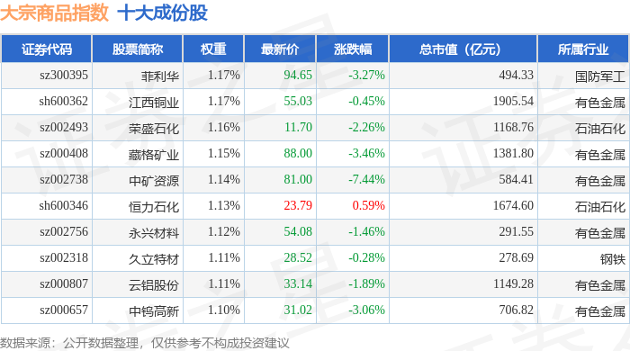 大宗商品(000979)指数十大成份股详情如下:
