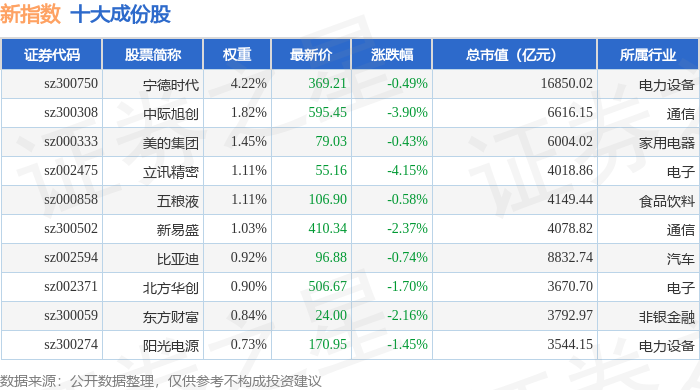 新指数(399100)十大成份股详情如下: