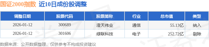 近10日内国证2000(399303)指数成份股做了调整,新纳入了1只股票,剔除了1只股票。
