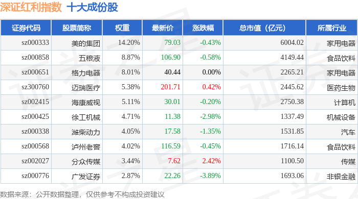 深证红利(399324)指数十大成份股详情如下:
