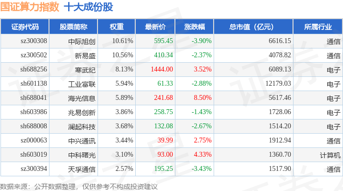 国证算力(399363)指数十大成份股详情如下: