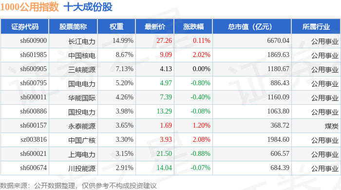 资金流向方面,1000公用(399390)指数成份股当日主力资金净流出合计2.64亿元,游资资金净流入合计1160.51万元,散户资金净流入合计2.53亿元。成份股资金流向详情见下表: