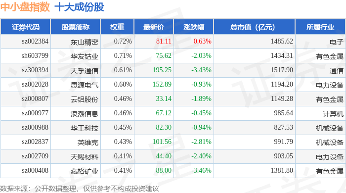近10日内中小盘(399401)指数成份股做了调整,新纳入了1只股票,剔除了1只股票。