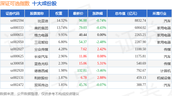 深证可选(399616)指数十大成份股详情如下:
