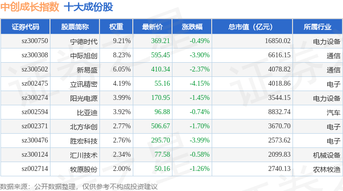 资金流向方面,中创成长(399626)指数成份股当日主力资金净流出合计206.86亿元,游资资金净流入合计94.97亿元,散户资金净流入合计111.89亿元。成份股资金流向详情见下表: