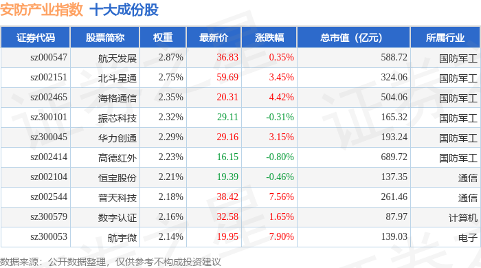 证券之星消息,1月8日,安防产业(399693)指数报收于5637.66点,涨2.36%,成交813.66亿元,换手率6.13%。当日该指数成份股中,上涨的有41家,海兰信以20.0%的涨幅领涨,下跌的有9家,锐捷网络以2.53%的跌幅领跌。