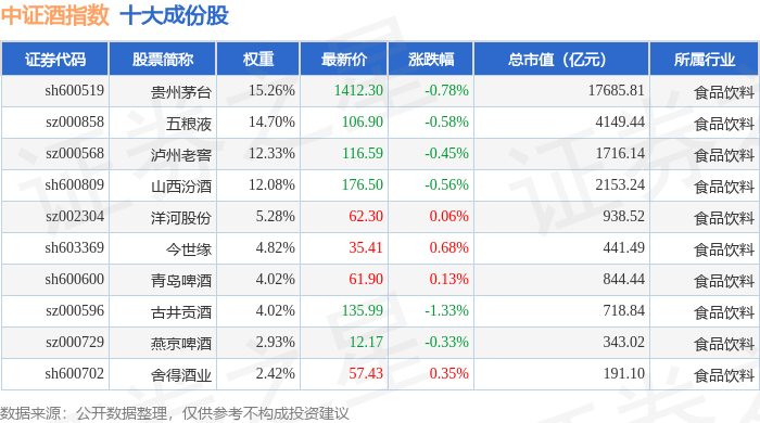 资金流向方面,中证酒(399987)指数成份股当日主力资金净流出合计6.79亿元,游资资金净流入合计3.61亿元,散户资金净流入合计3.19亿元。成份股资金流向详情见下表: