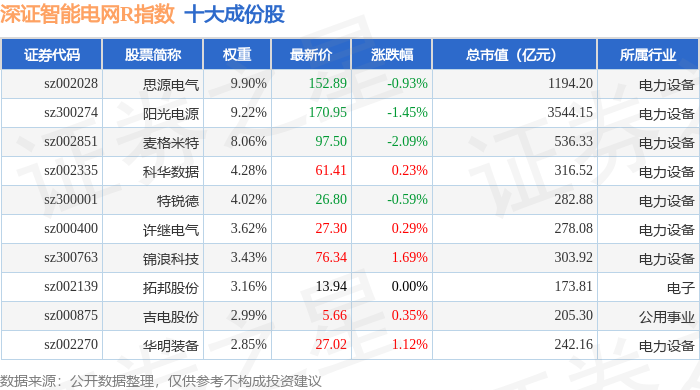 深证智能电网R(470054)指数十大成份股详情如下: