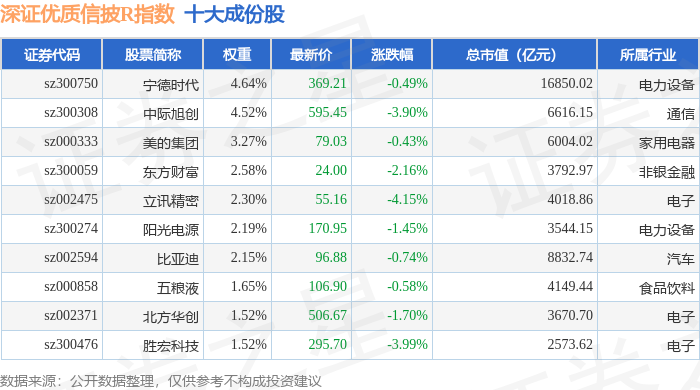 深证优质信披R(470065)指数十大成份股详情如下: