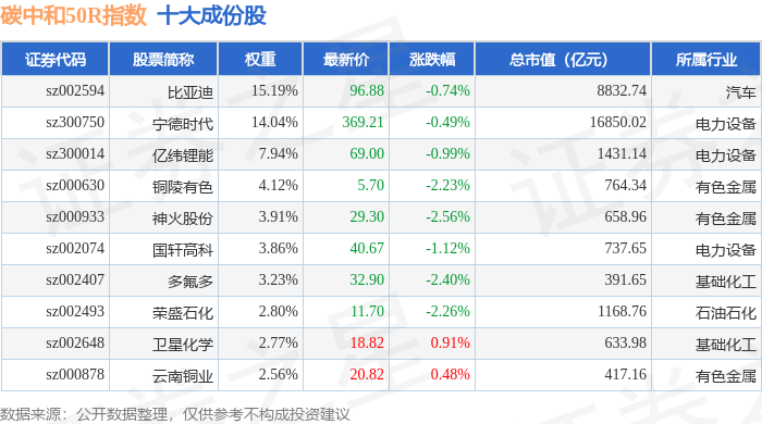 碳中和50R(480021)指数十大成份股详情如下:
