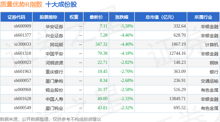 质量优势R(489017)指数十大成份股详情如下: