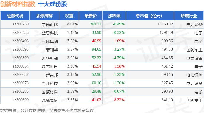创新材料(970039)指数十大成份股详情如下: