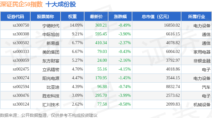 深证民企50(970057)指数十大成份股详情如下: