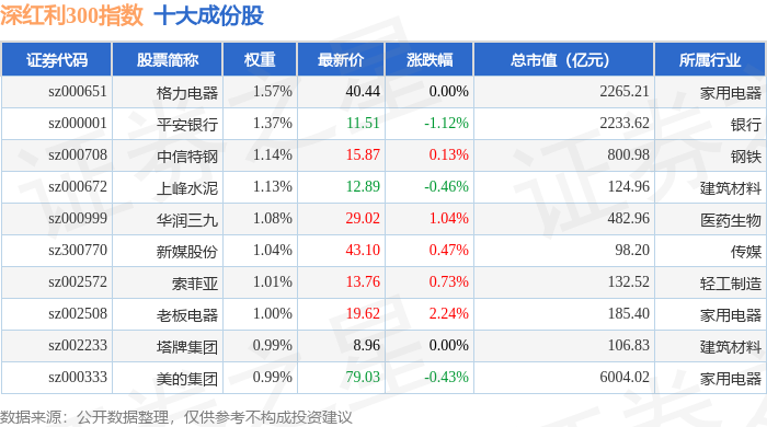 深红利300(970062)指数十大成份股详情如下: