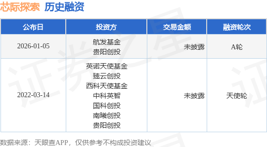 证券之星消息,根据天眼查APP于1月5日公布的信息整理,贵州芯际探索科技有限公司A轮融资,融资额未披露,参与投资的机构包括航发基金,贵阳创投。