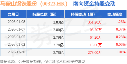 证券之星消息,1月8日南向资金增持351.2万股马鞍山钢铁股份(00323.HK)。近5个交易日中,获南向资金增持的有5天,累计净增持812.2万股。近20个交易日中,获南向资金增持的有11天,累计净增持507.4万股。截至目前,南向资金持有马鞍山钢铁股份(00323.HK)2.83亿股,占公司已发行普通股的16.33%。