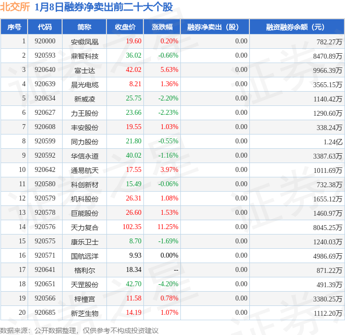 北交所融券净卖出前三分别为:None,前20具体见下表: