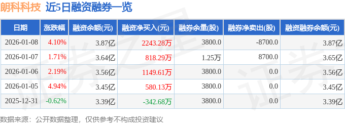 证券之星消息,截至2026年1月8日收盘,朗科科技(300042)报收于29.18元,上涨4.1%,换手率11.71%,成交量23.46万手,成交额6.84亿元。