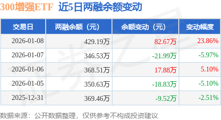 证券之星消息,1月8日,300增强ETF(561300)融资买入93.98万元,融资偿还11.32万元,融资净买入82.67万元,融资余额429.19万元,近20个交易日中有11个交易日出现融资净买入。