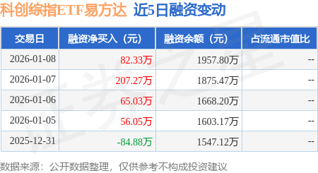 证券之星消息,1月8日,科创综指ETF易方达(589800)融资买入351.63万元,融资偿还269.29万元,融资净买入82.33万元,融资余额1957.8万元,近3个交易日已连续净买入累计354.64万元,近20个交易日中有12个交易日出现融资净买入。