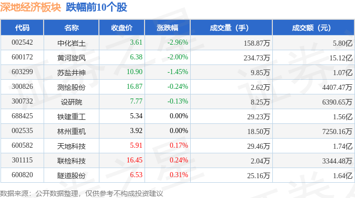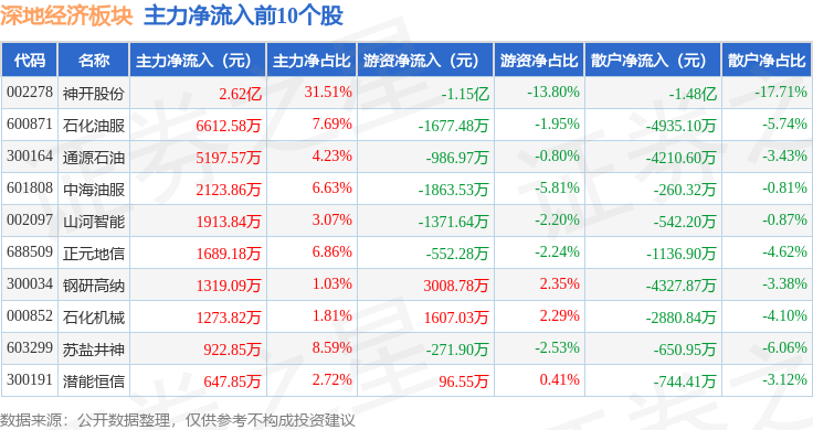 从资金流向上来看,当日深地经济板块主力资金净流出3705.2万元,游资资金净流出9603.97万元,散户资金净流入1.33亿元。深地经济板块个股资金流向见下表: