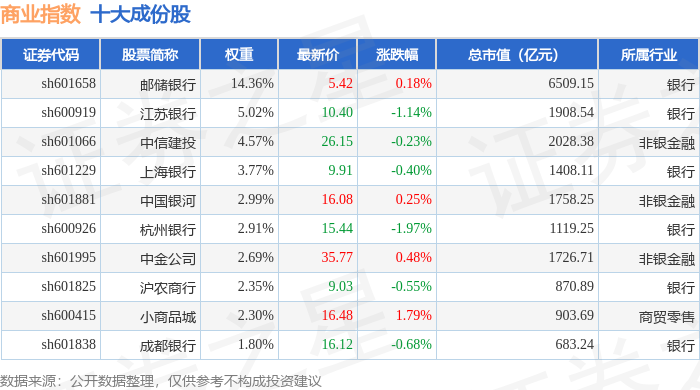证券之星消息,1月9日,商业指数(000005)报收于2903.53点,涨0.68%,成交663.28亿元,换手率1.38%。当日该指数成份股中,上涨的有132家,慧辰股份以12.77%的涨幅领涨,下跌的有35家,来伊份以3.24%的跌幅领跌。