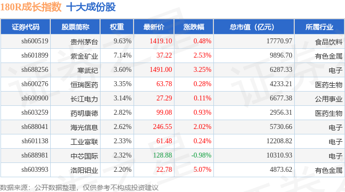 证券之星消息,1月9日,180R成长(000030)指数报收于2718.82点,涨0.73%,成交2857.3亿元,换手率0.99%。当日该指数成份股中,上涨的有83家,中国卫通以9.99%的涨幅领涨,下跌的有46家,大全能源以6.1%的跌幅领跌。