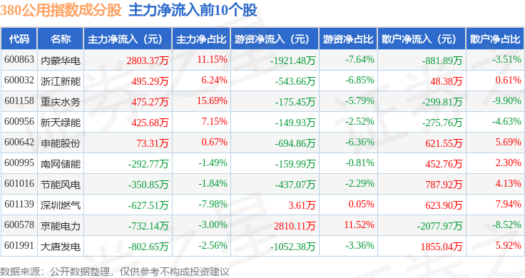 资金流向方面,380公用(000113)指数成份股当日主力资金净流出合计6.06亿元,游资资金净流入合计7169.09万元,散户资金净流入合计5.34亿元。成份股资金流向详情见下表: